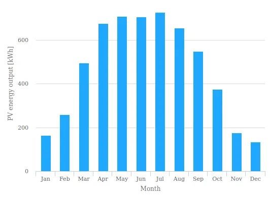 - W słoneczne dni moc rzeczywista wynosi 80-90% mocy szczytowej, a w pochmurne 10-20%.