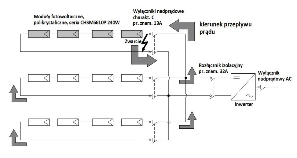 W praktyce wyłączniki nadprądowe stosuje się w różnych scenariuszach, na przykład podczas wystąpienia zwarcia lub w przypadku uszkodzenia paneli. Dzięki nim możliwe jest szybkie odcięcie zasilania, co minimalizuje ryzyko poważniejszych awarii. Wybór odpowiedniego wyłącznika zależy od specyfiki instalacji oraz przewidywanego obciążenia.